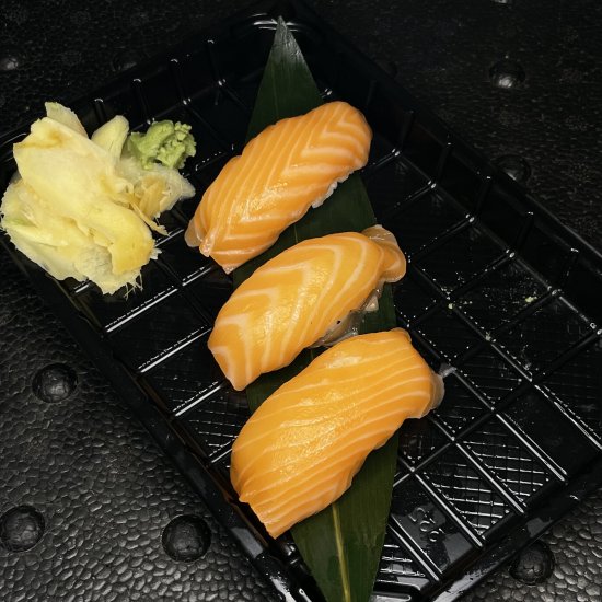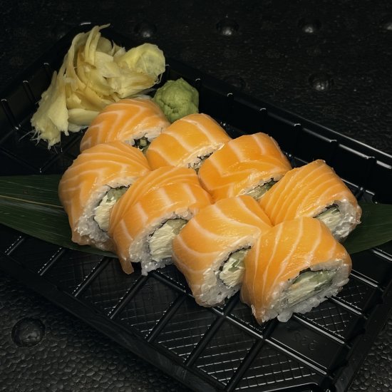Рис, норі, крем сир, огірок, авокадо, помідор, грильований лосось, конжут Вага:280